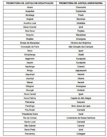 Segundo o promotor de Justiça Artur Ferrari, a decisão foi tomada na semana passada, após o Tribunal de Justiça da Bahia (TJ-BA) desativar 33 comarcas no estado, em 5 de julho de 2017. A medida também visa a diminuir os custos que o MP-BA tem com a manutenção dessas unidades.