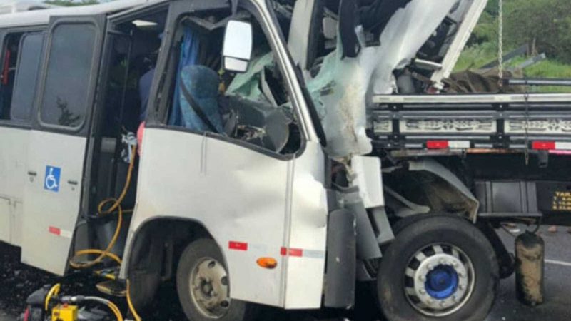De acordo com a Polícia Rodoviária Federal (PRF), o motorista do caminhão ficou preso às ferragens e morreu no local do acidente. Quatro vítimas foram encaminhadas para hospital da região. O coletivo transportava 32 passageiros, além do motorista. Muitos feridos receberam atendimento no local.