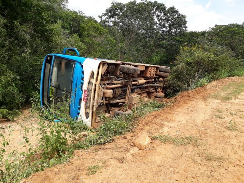 Dez crianças e três adultos ficaram feridos depois que o ônibus escolar em que estavam tombou em uma ribanceira, na manhã desta sexta-feira (23), no povoado de Vila Nova da Conceição, zona rural de São Desidério, oeste da Bahia. Ao todo, 35 estudantes estavam no veículo.