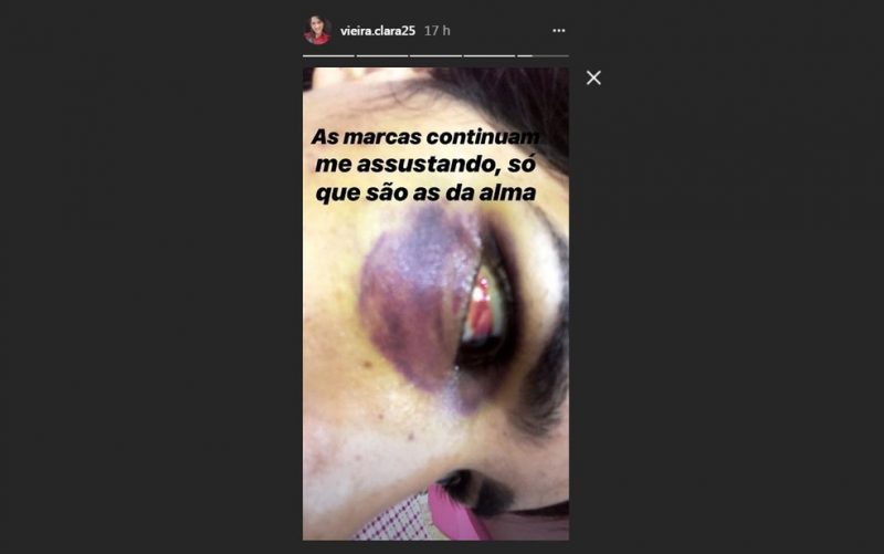 “As marcas que continuam me assustando, só que são as da alma”, publica Clara, ao mostrar uma foto com marcas da agressão no rosto.