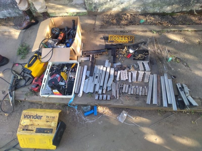 Com eles, os policiais encontraram mais uma submetralhadora, uma espingarda calibre 12, diversos carregadores e peças utilizadas para fabricação de submetralhadoras.
