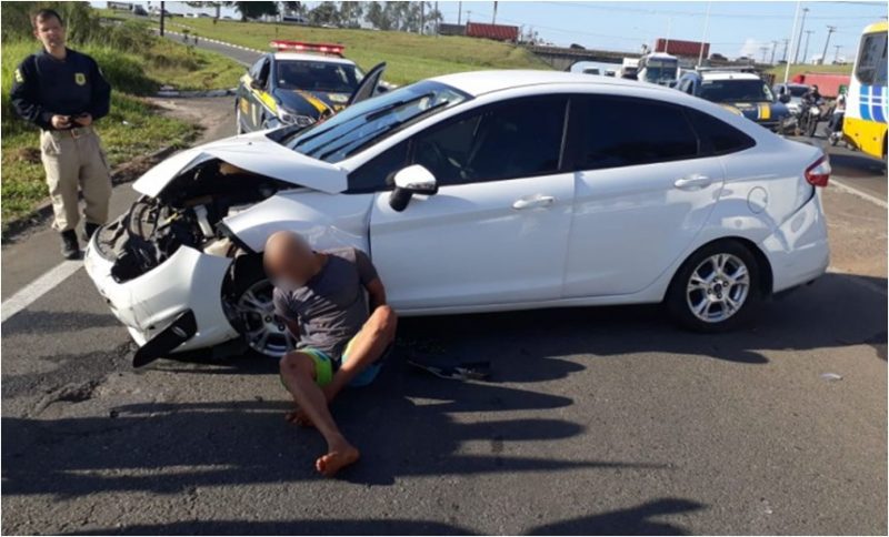 Ao perceberem a presença dos policiais, os criminosos tentaram fugir efetuando diversas manobras perigosas na rodovia e acabaram colidindo com um carro. Um dos suspeitos tentou fugir a pé, mas foi alcançado.