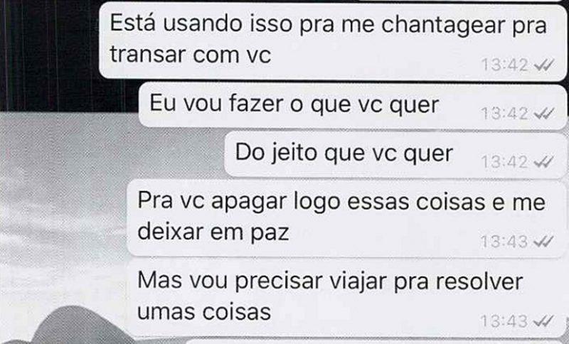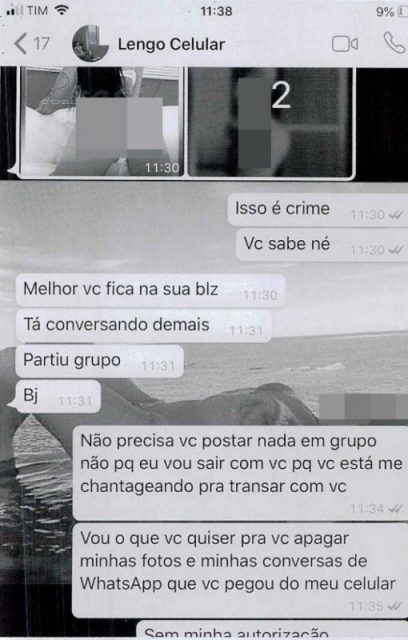 “Ela fez uma compra na minha loja e as fotos íntimas dela ficaram no aparelho que ela deixou na loja. Em nenhum momento eu compartilhei as fotos dela ou utilizei as fotos dela para chantagear ela. As conversas que tive com ela no WhatsApp foram normais, não teve ameaça nenhuma”, alegou.