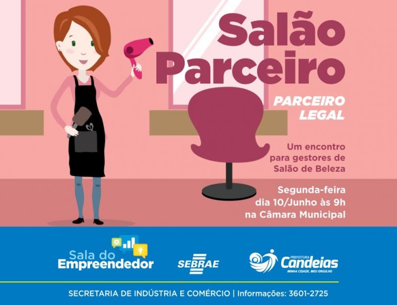 A Prefeitura, por meio Secretaria de Indústria e Comércio – Seinco, em parceria com o Serviço de Apoio às Micro e Pequenas Empresas (Sebrae), junto a Sala do Empreendedor em Candeias, vai realizar na próxima segunda-feira, 10, na Câmara de Municipal de Candeias, no Bairro do Outro Negro, um encontro para gestores de salão de beleza. O dia foi escolhido por ser o de descanso dos profissionais da área.