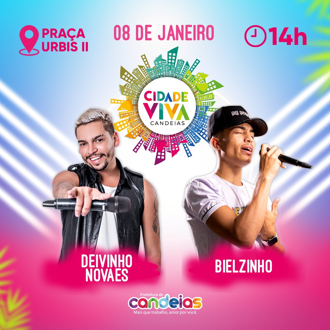 O projeto Cidade Viva continua a todo vapor, nesse domingo (08), a partir das 14h será na Praça da Urbis II. O evento contará com um show especial de Bielzinho Cantor e Devinho Novaes. Além disso, a prefeitura convidou os ganhadores do show de talentos da última edição do Cidade Viva para compor o quadro de show do evento. Foram ao total 8 ganhadores, 5 da categoria A e 3 da categoria B.