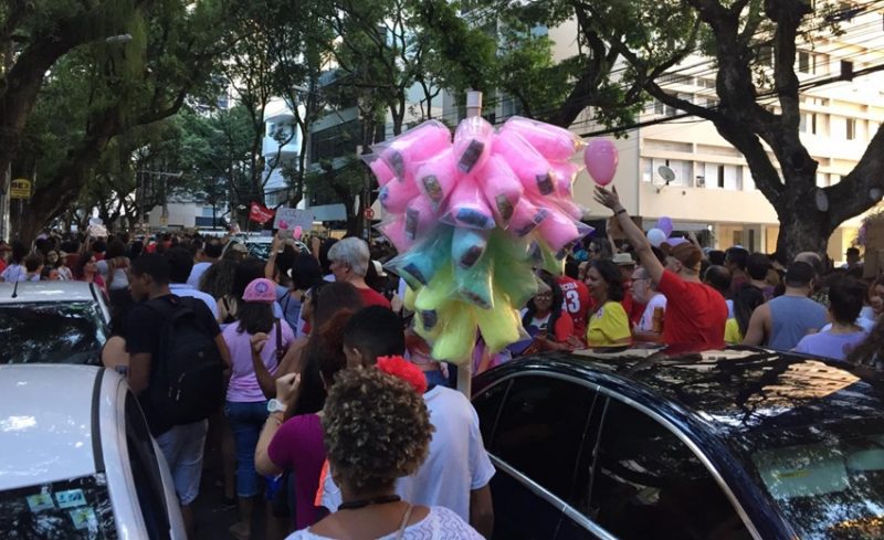Manifestantes fazem protesto contra o candidato a presidência Jair Bolsonaro na tarde deste sábado (29/9). Na manhã deste sábado, um grupo de mulheres também se reuniu em manifestação na marcha “Mulheres unidas contra Bolsonaro”. Os manifestantes marcharam pela Avenida Oceânica.