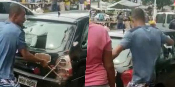 Bnews – Um homem destruiu o próprio carro durante uma blitz na última terça-feira (28), em Salvador. O condutor do veículo, durante um ataque fúria, utilizou uma chave de roda para quebrar peças da parte frontal, lateral e traseira do veículo. O episódio foi gravado por pessoas que passavam pela região do Largo do Luso, no bairro de Plataforma, subúrbio da cidade.