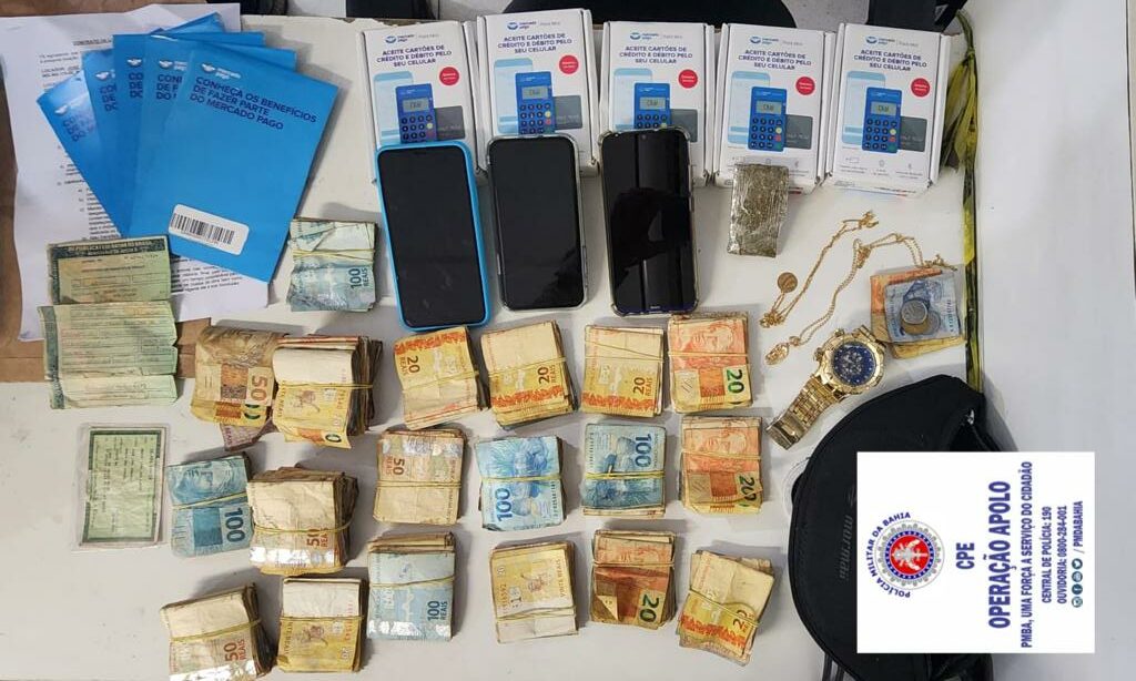 Um tablete de maconha, R$ 18 mil e cinco máquinas de cartão foram apreendidos durante abordagem a um veículo na rua Silveira Martins, no Cabula, em Salvador.