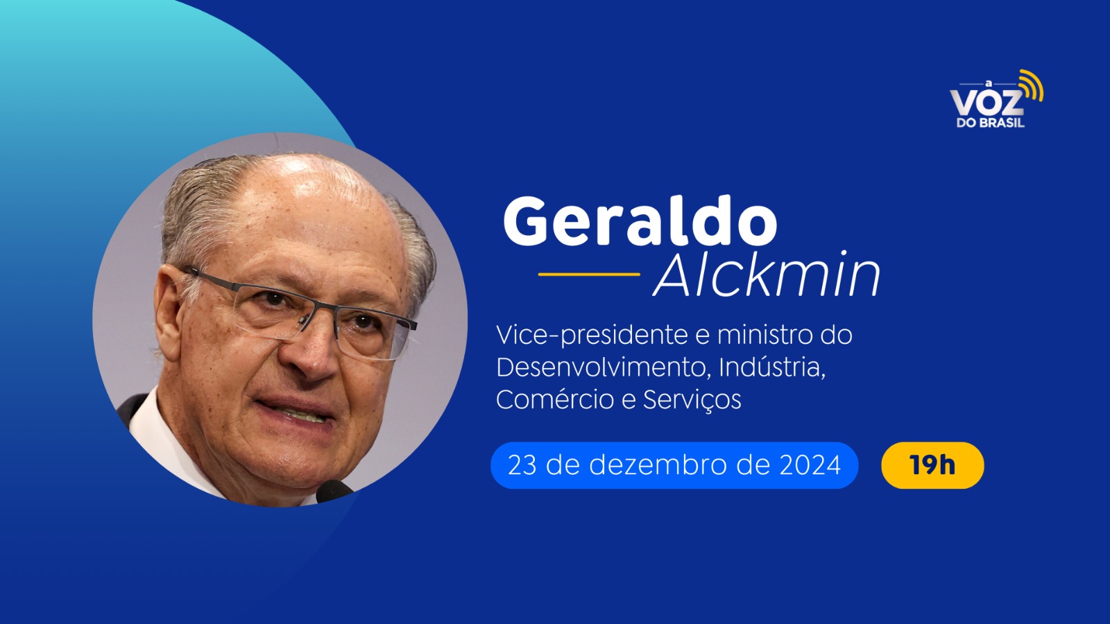O programa “A Voz do Brasil” desta segunda-feira (23/12) traz uma entrevista exclusiva com o vice-presidente e ministro do Desenvolvimento, Indústria, Comércio e Serviços (MDIC), Geraldo Alckmin. A partir das 19h, os ouvintes poderão acompanhar a conversa com o ministro no Canal Gov. Na entrevista, Alckmin irá compartilhar as perspectivas do governo para o ano de 2025, além de abordar temas importantes deste ano, como a Reforma Tributária.
