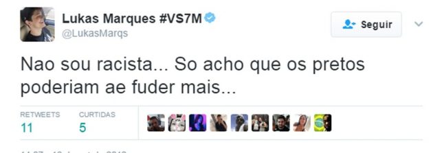 O youtuber Lukas Marques, proprietário de um dos seis canais contratados pelo Ministério da Educação (MEC) para defender a reforma do ensino médio, pediu desculpas nesta sexta-feira (17) por posts antigos com conteúdo racistas e preconceituosos em seu perfil no Twitter.