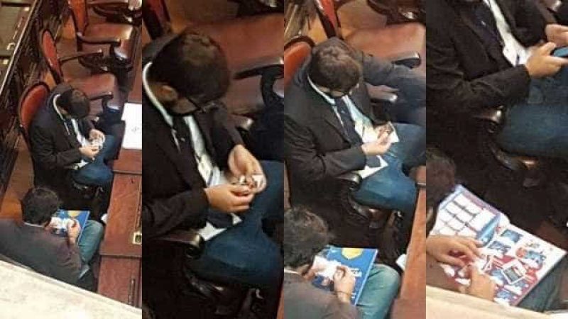 A deputada Martha Rocha (PDT) discursava no plenário quando os dois homens aproveitaram para completar álbuns de figurinhas, segundo revela o jornal Extra.