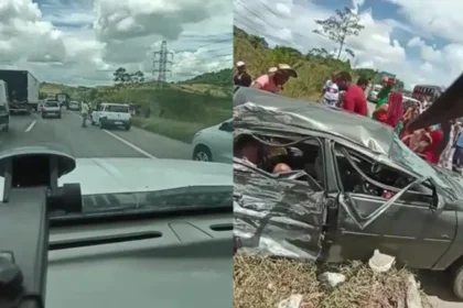 Mulher morre e três ficam feridos em grave acidente na BR-324