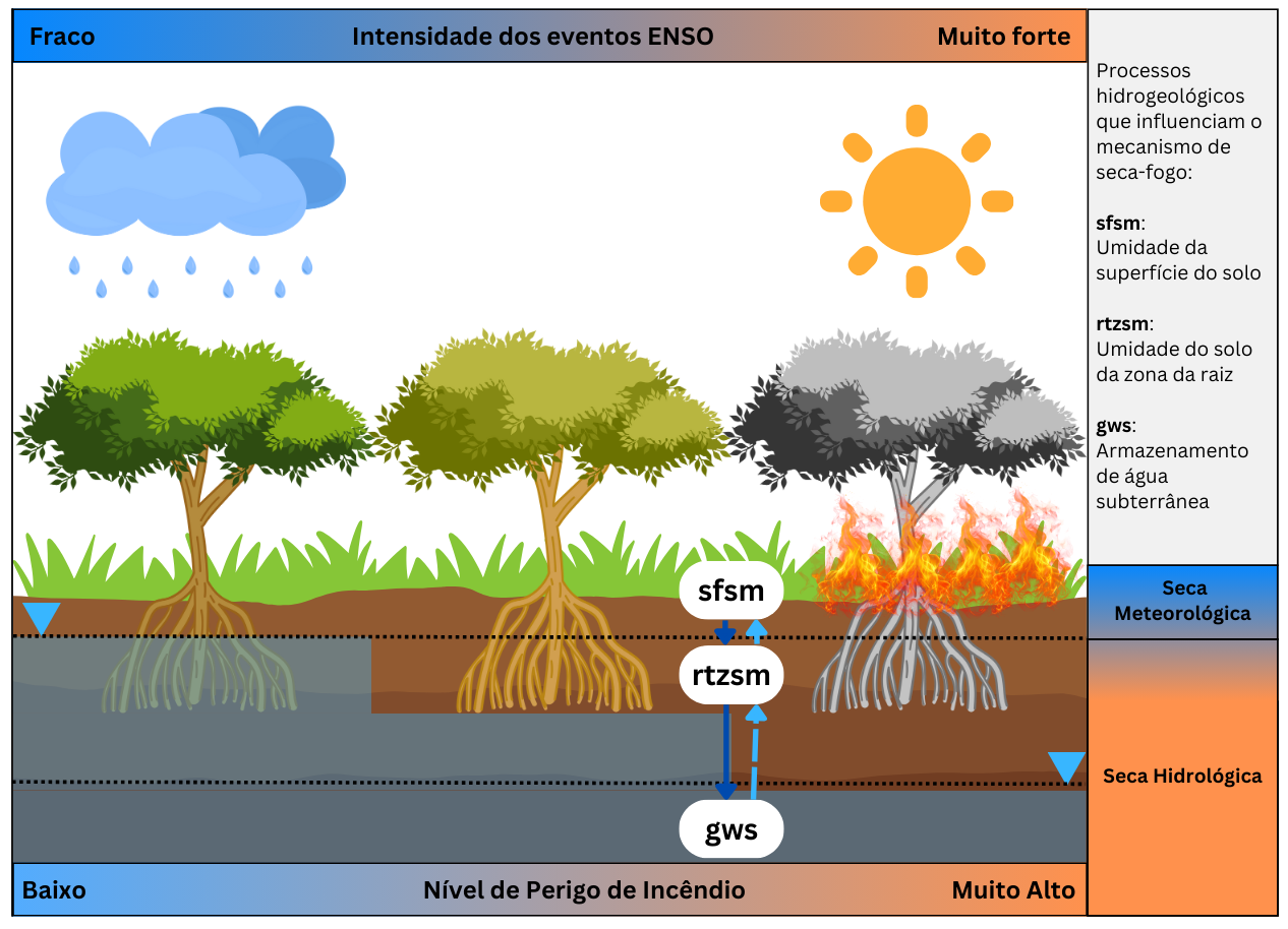 O risco de incêndio na Amazônia está diretamente relacionado ao comprometimento do armazenamento de água subterrânea, especialmente durante períodos de seca agravados pelo El Niño. Pesquisadores utilizaram imagens de satélite e dados de queimadas para evidenciar essa conexão, desenvolvendo uma ferramenta potencialmente útil para ações preventivas.