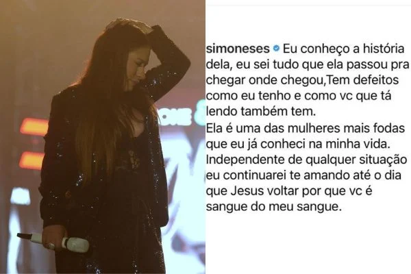 Todos sabem que a relação com família, amigos e pessoas com muita vivência no dia a dia tende a ter seus desafios. E isso não é diferente com Simone e Simaria. A coluna LeoDias acompanha de perto o conturbado período que a dupla tem passado revelando bastidores de intrigas e expondo brigas públicas com o ápice em uma entrevista concedida por Simaria ao titular desta coluna há duas semanas. Mas, mesmo com as divergências, as duas continuam se amando. Simone deixou uma linda declaração de amor à irmã em uma publicação sobre a história de luta de Simaria.