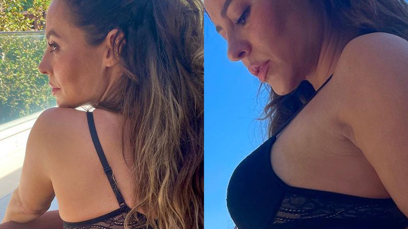 Em cliques nas redes sociais, a famosa deixou o corpão todo à mostra enquanto usava só sutiã e calcinha em tom de rosa bem intenso, preto e bege, desenhando as curvas acentuadas por todos os ângulos.