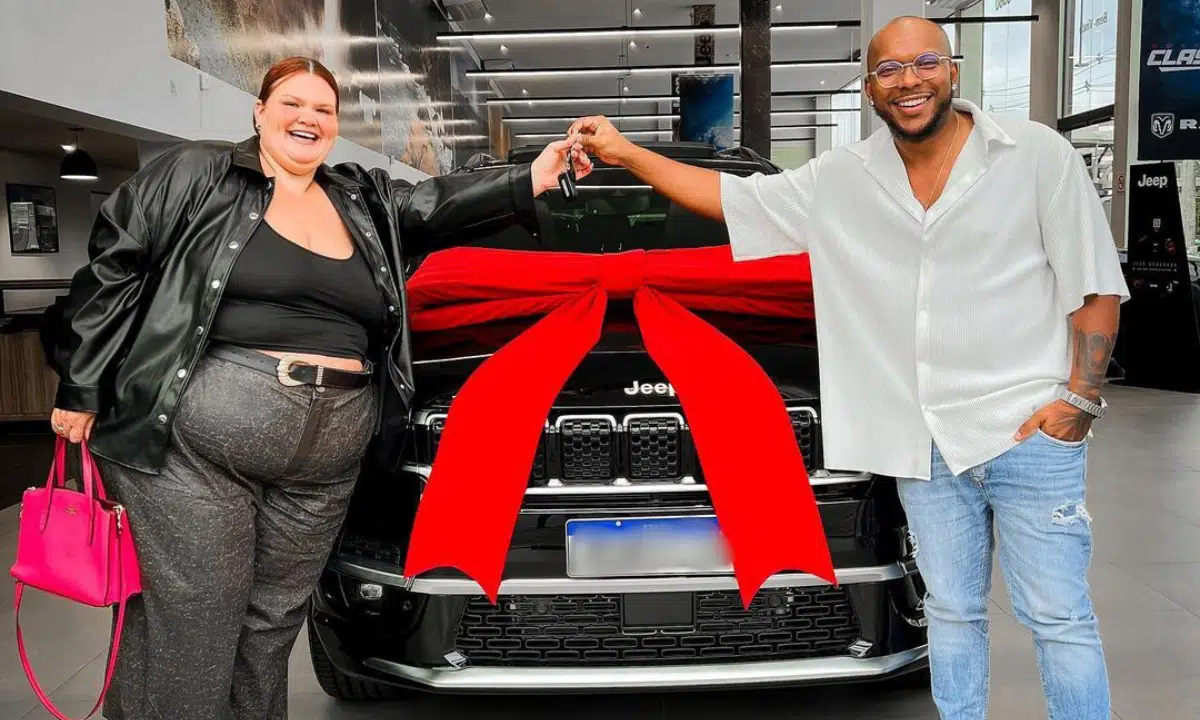 Os dois apareceram sorridentes na frente de um Jeep Commander Overland 2022, o modelo custa em torno de R$200 mil no modelo mais básico e pode chegar a R$280 mil.