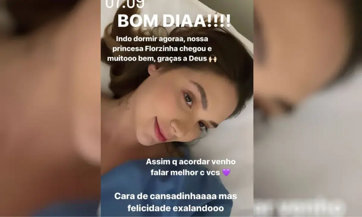“Bom dia. Indo dormir agora, nossa princesa florzinha chegou e muito bem, graças a Deus. Cansadinha, mas felicidade exalando”, escreveu a influenciadora.