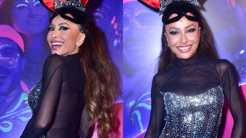 A apresentadora Sabrina Sato apostou em um look totalmente transparente nesta sexta-feira (20) para um evento de pré-Carnaval.