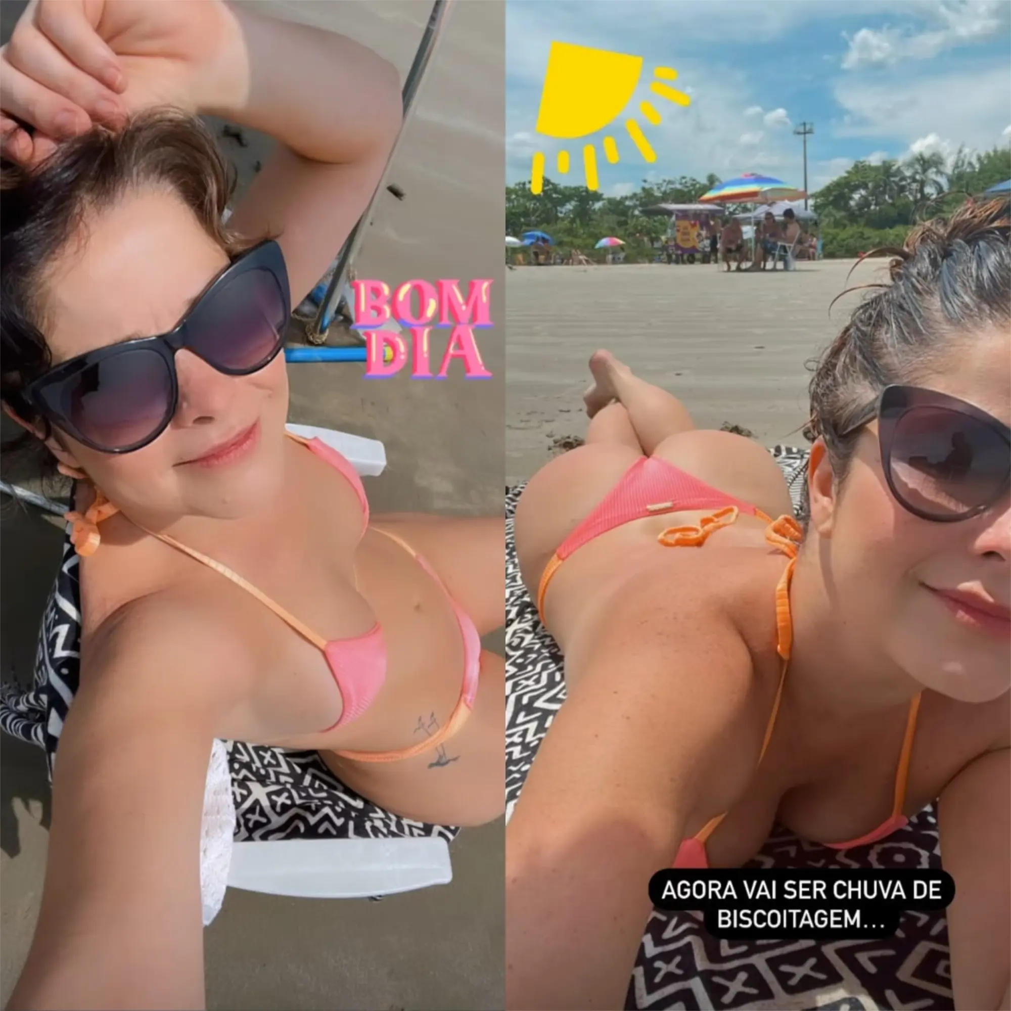 Por meio dos stories de seu Instagram oficial, a atriz publicou algumas selfies e exibiu corpão de tirar o fôlego. Na primeira foto, a gata surgiu sentada e mostrou a barriga chapada. Já no segundo clique, ela apareceu deitada na areia e colocou o bumbum pra jogo.