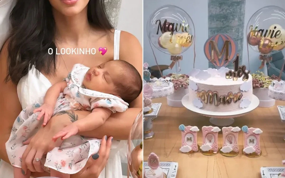 Na segunda (6), Mavie ganhou uma festa de surpresa de “mesversário”, organizada pela madrinha, Hanna Carvalho.