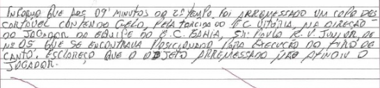 O árbitro da partida, Jailson Macedo de Freitas, registrou na súmula o arremesso do copo no campo, porém alertou que o objeto não atingiu o jogador Juninho.