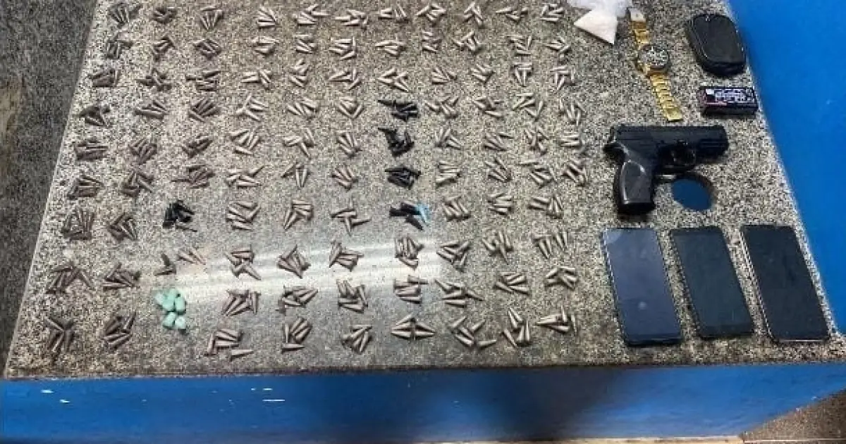 Policiais militares da 22ª CIPM apreenderam uma réplica de arma de fogo e prenderam dois homens suspeitos de tráfico de drogas, no sábado (4), na cidade de Simões Filho, Região Metropolitana de Salvador (RMS).