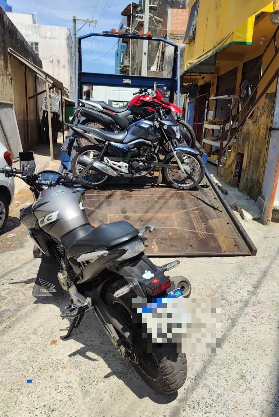 Ao realizar uma incursão nas proximidades da Escola Municipal Jesus de Nazaré, os agentes encontraram três motocicletas com registro de roubo.