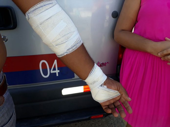 Na discussão, o motorista clandestino atingiu a vítima, identificada como Franquilim Alves Cardoso, de 43 anos, com golpes de facão. Ele foi levado para o Hospital Ouro Negro com ferimentos no braço esquerdo, mãos e cabeça. De acordo com a vítima, o agressor tentou invadir o Hospital e foi contido pelos seguranças. A Polícia Militar foi acionada para conter a confusão. “Manobrei para pegar um passageiro, o cidadão atravessou na frente do hospital, atravessou o carro e veio me provocando. Meu carro chocou com o fundo do carro dele ele saiu do carro, tirou o facão e veio me agredir. Entramos em luta corporal até que cortou meu braço, minha mão. Entrei no hospital até que ele veio dizendo que ia terminar o serviço”, contou o motorista.