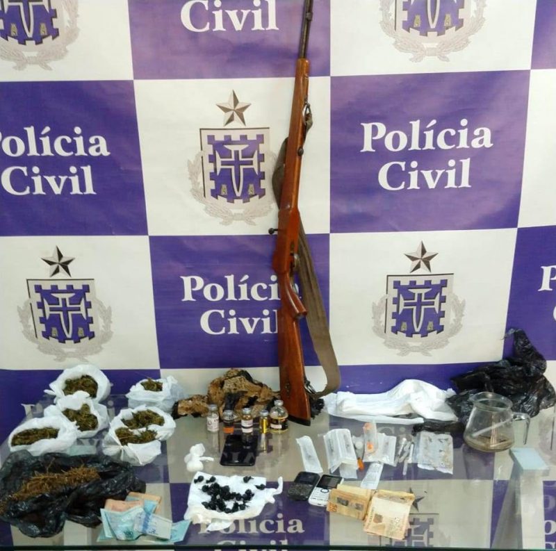 Maconha e cocaína embaladas para venda, uma arma de fogo de fabricação caseira, material para acondicionar drogas, além de anabolizantes, seringas e mais de mil reais, em espécie, foram apreendidos, em uma academia, no sábado (17), durante ações da 19ª Coordenadoria Regional de Polícia do Interior (Coorpin), com sede em Senhor do Bonfim.