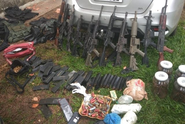Suspeitos reuniam arsenal de guerra nos dois imóveis no perímetro rural. Conforme informações obtidas com exclusividade pela Itatiaia, pelo menos dez fuzis foram recolhidos, além de uma escopeta calibre 12 e três metralhadoras ponto50 – capazes de derrubar até aeronaves. De acordo com a capitão Layla Brunnella, porta-voz da Polícia Militar (PM), a quadrilha de roubos a banco era composta por vários criminosos. Durante a ação, também foram encontrados explosivos.