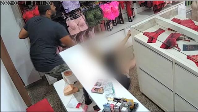 O vídeo mostra que o suspeito tentou arrastar a funcionária para um canto da loja, mas ela resistiu. Um outro homem entra no sex shop e tenta tirar o agressor de cima da vítima, sem sucesso. Em seguida, outras duas pessoas entram no local.