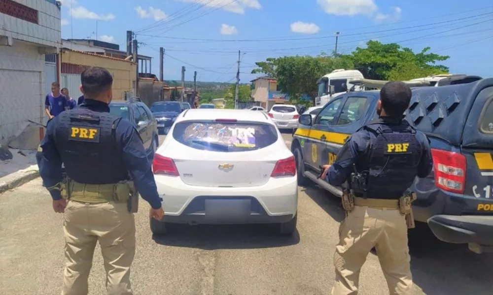Dois indivíduos foram apreendidos por uma equipe da Polícia Rodoviária Federal (PRF) após serem flagrados com veículo roubado, em Simões Filho. A polícia realizava fiscalização de trânsito no Km 604 da BR-324, quando deu ordem de parada ao veículo Chevrolet/Onix, de cor branca que passava pela localização.
