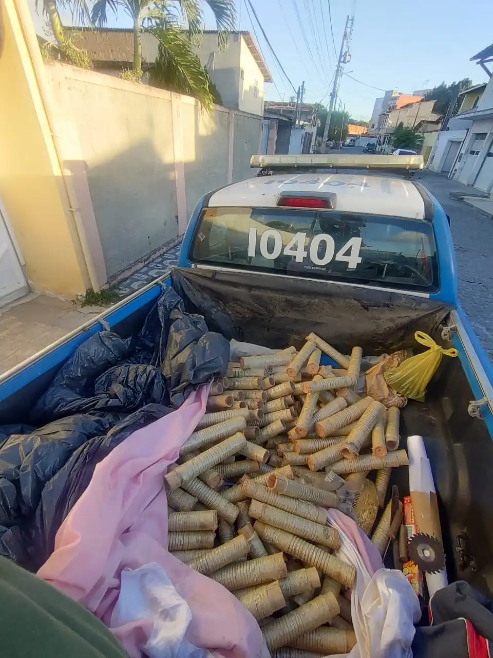 A ação ocorreu após uma denúncia anônima, que levou os policiais até uma casa situada no bairro do Inocoop. No local, foram encontradas 182 unidades de espadas juninas, já em fase final de fabricação, além de materiais utilizados na confecção dos artefatos, que estavam distribuídos pelos cômodos da residência. Em um quarto nos fundos do imóvel, foram localizados itens como pólvora, sacos de cerol, um pilão e outros insumos. Já em outro quarto, dentro da casa, estavam as espadas quase prontas.