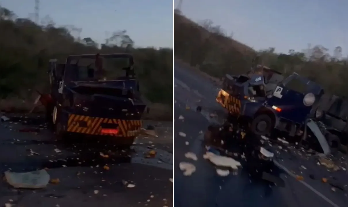 Um carro forte ficou destruído após uma tentativa de assalto, que aconteceu na noite do dia 4 de dezembro, em um trecho da BR-101, próximo à Barragem de Pedra do Cavalo, no Recôncavo da Bahia.