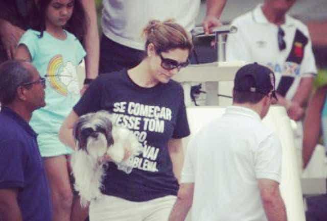 Ao descer da lancha, Michelle vestia uma camisa com frase famosa da juíza Gabriela Hardt, durante interrogatório do ex-presidente Luiz Inácio Lula da Silva, no mês passado.