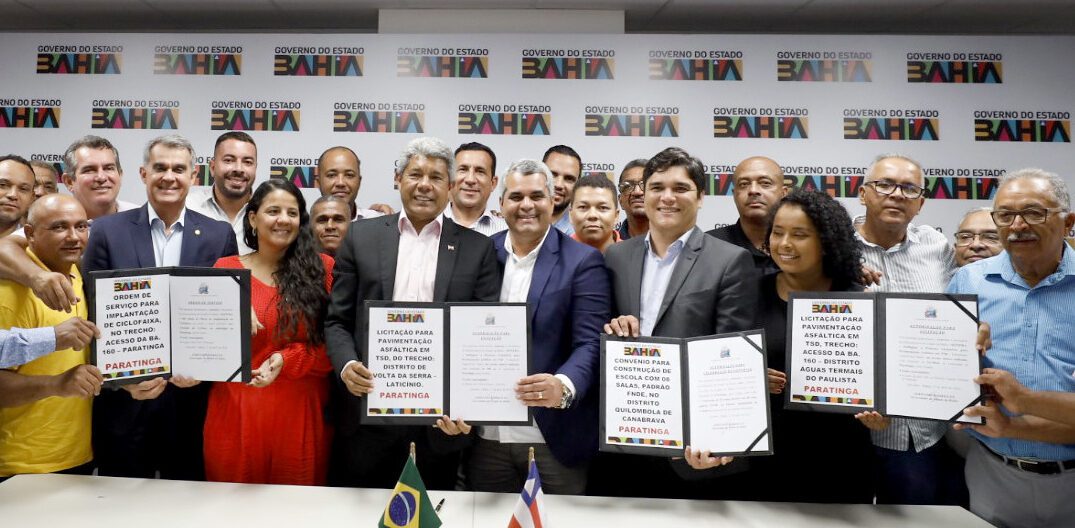 No anúncio feito na tarde desta quarta-feira (14), o governador Jerônimo Rodrigues revelou planos para obras de pavimentação e educação em Paratinga, município localizado no Oeste da Bahia. As assinaturas dos projetos ocorreram no Centro de Operações e Inteligência da Segurança Pública (COI), em Salvador, e contaram com a presença de secretários estaduais e representantes políticos da região.