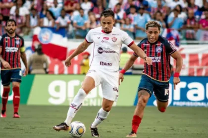 Em partida com duas viradas, o Vitória venceu o Bahia por 3…