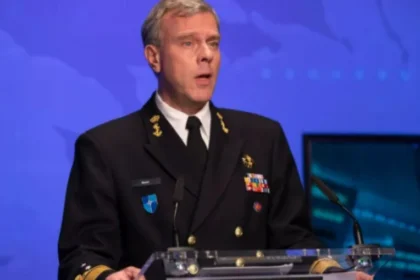 O almirante Rob Bauer, da Marinha Real Holandesa, e presidente do comitê…