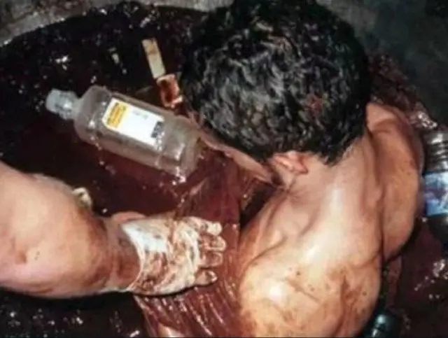 Os dois homens ficaram lambuzados e tinham chocolate até a cintura. Ambos não sofreram ferimentos e passam bem.